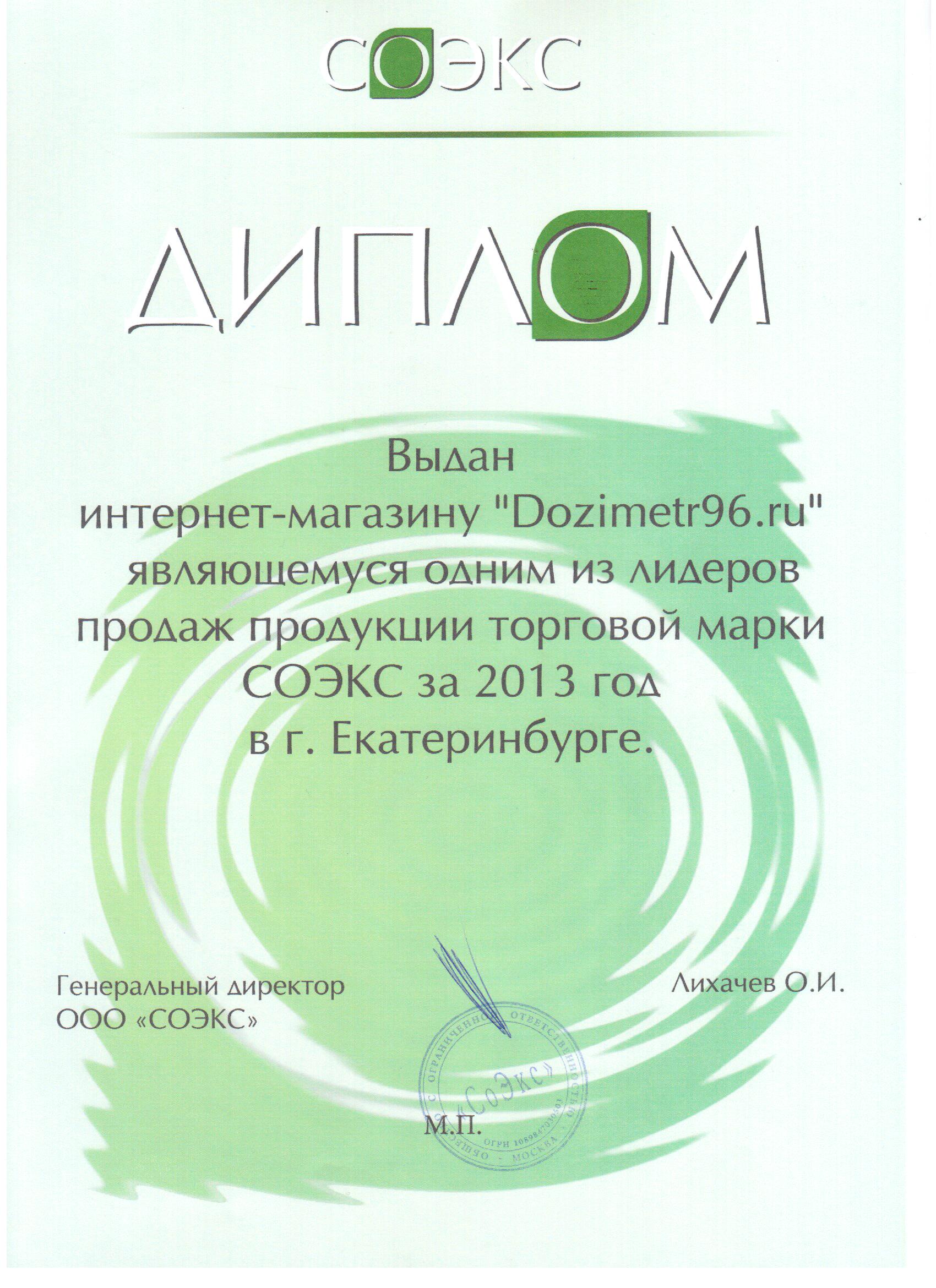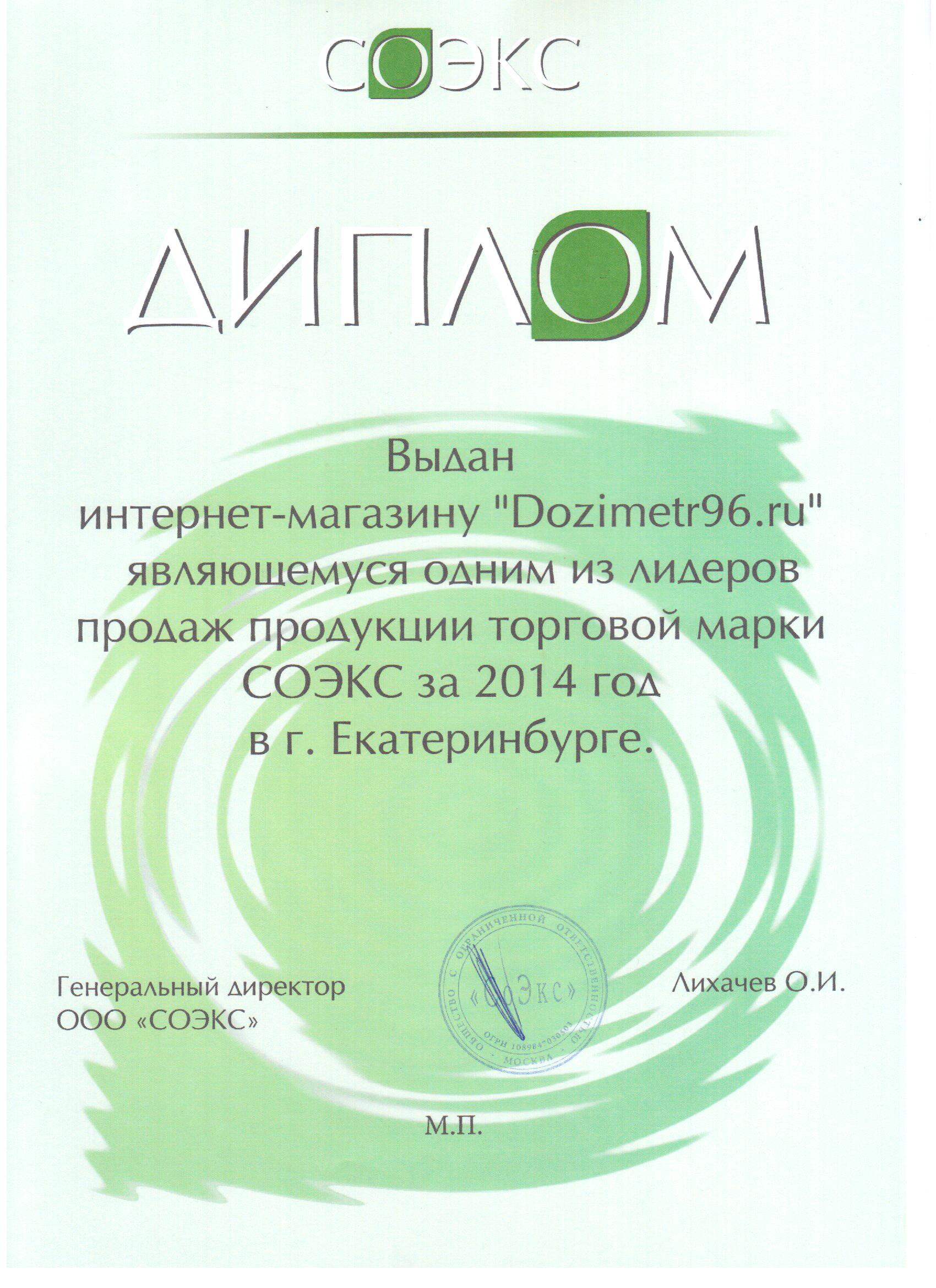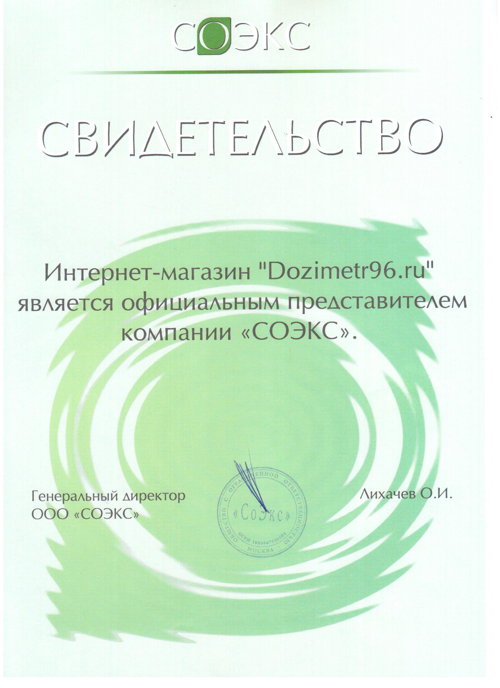 Интернет-магазин Dozimetr96.ru является официальным представителем компаний СОЭКС, Радэкс, Радиаскан, Haak Elektronik в Уральском регионе с 2009 г. (см. свидетельства). Мы удостоены дипломов "Лидер продаж" по итогам 2013, 2014 и 2015 гг.